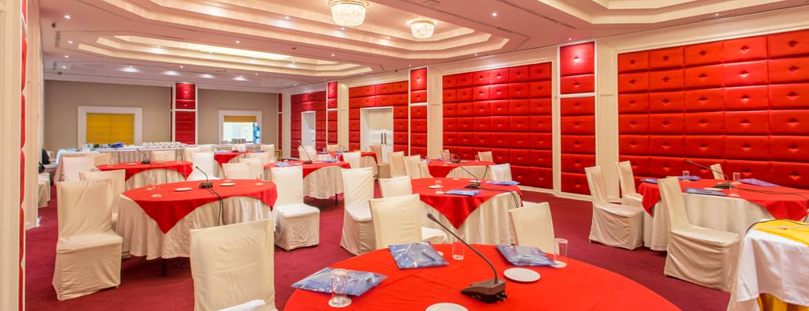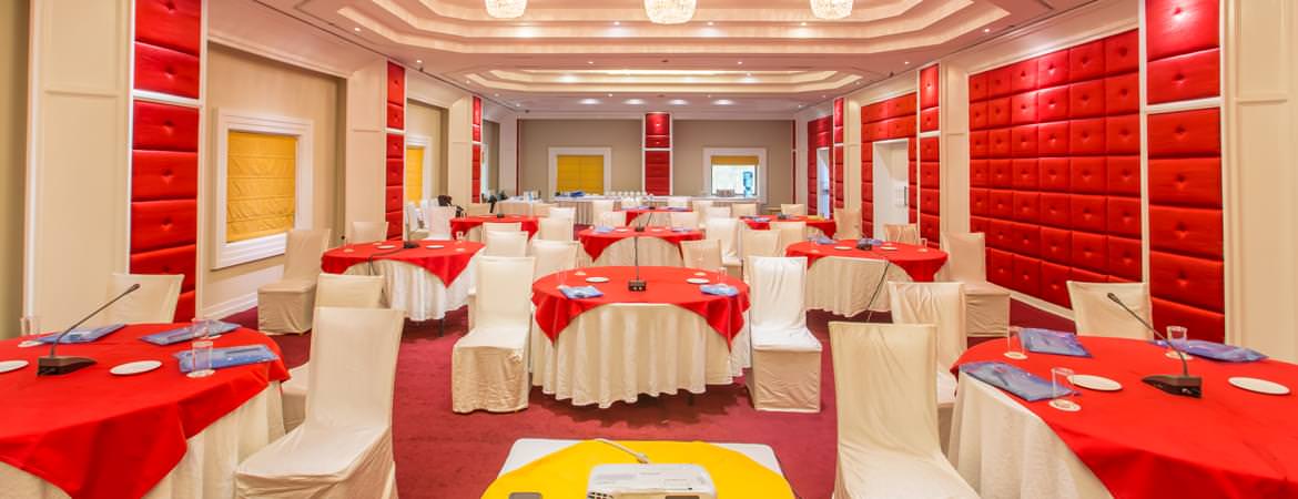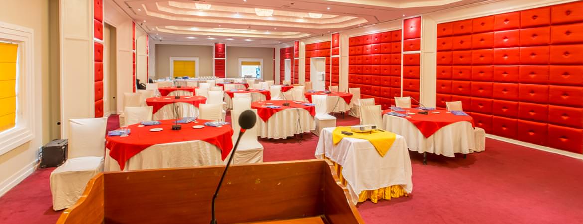 Our Rato Baithak hall is a spacious and elegant room with upholstered walls and state-of-the-art conference aids. This sophisticated and refined venue is perfect for both seminars and receptions of any kind. Skyline Hall and Rato Baithak are conveniently located on the same floor which can be used simultaneously for larger events.